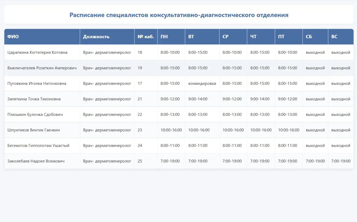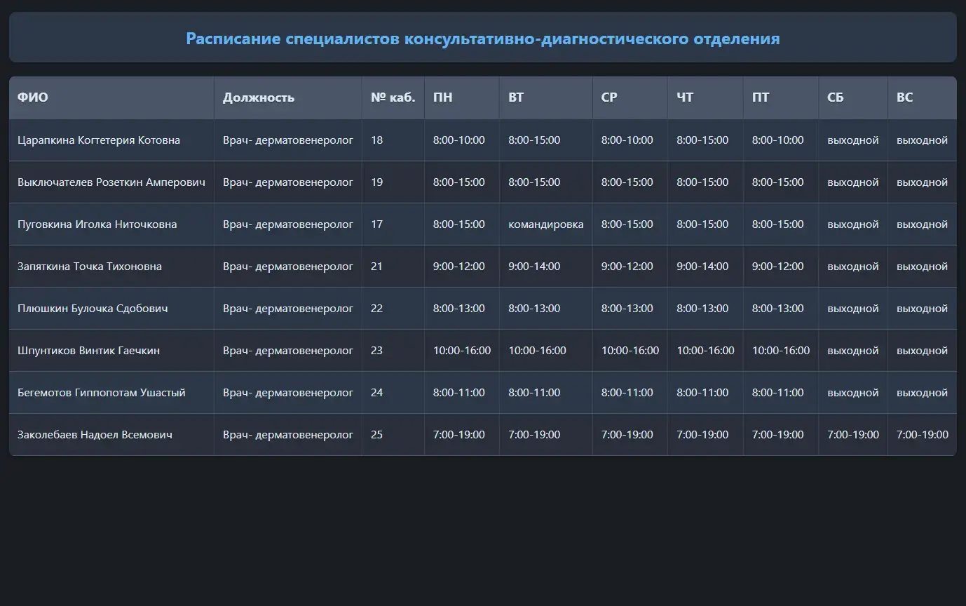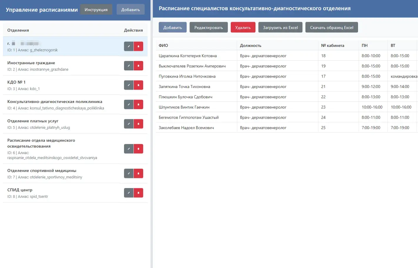 Программное обеспечение позволяющее автоматизировать обновление расписаний в медицинских учреждениях на сайте и в холлах.